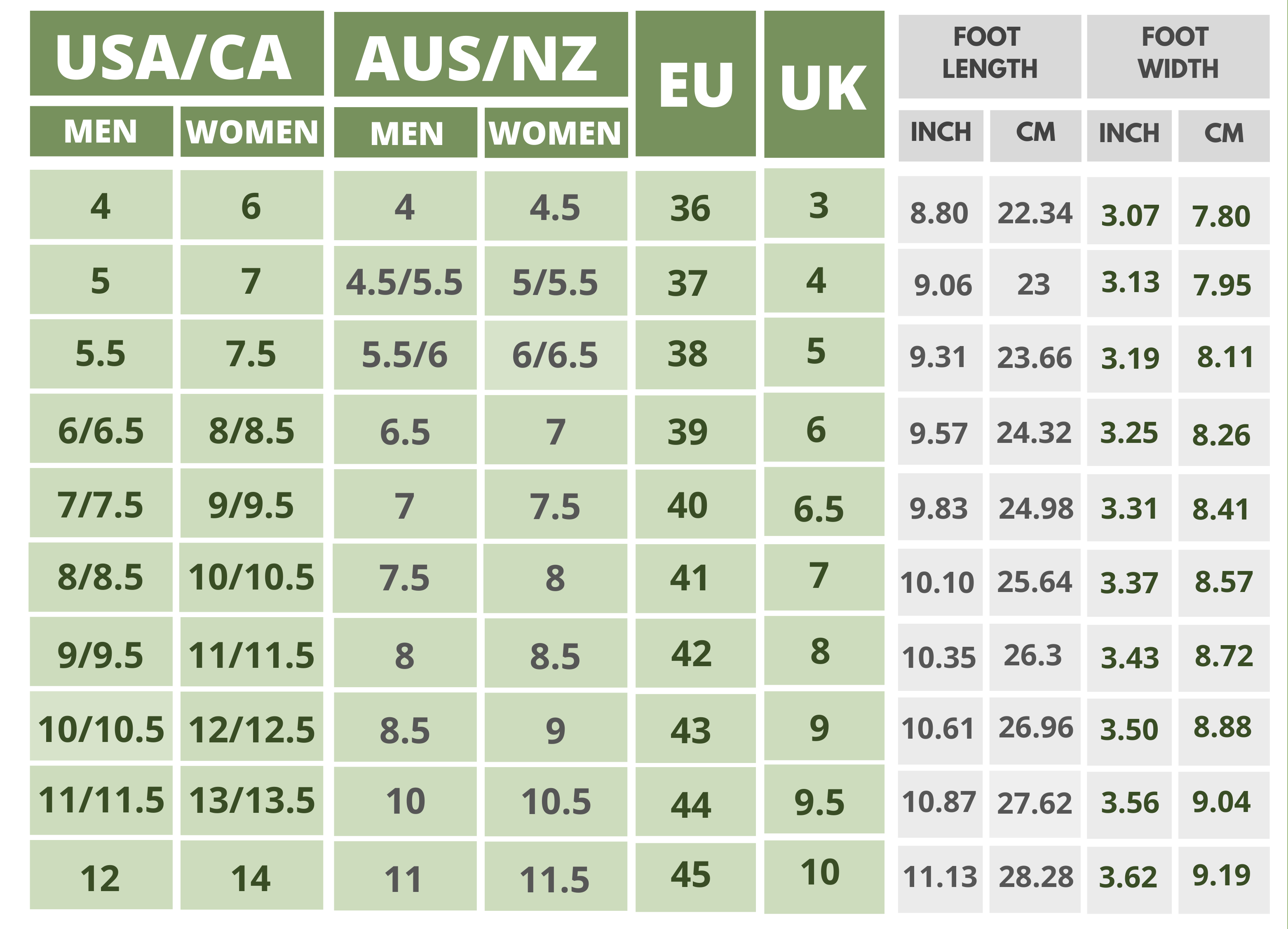 Click On the Shoe Name to Find The Size Chart